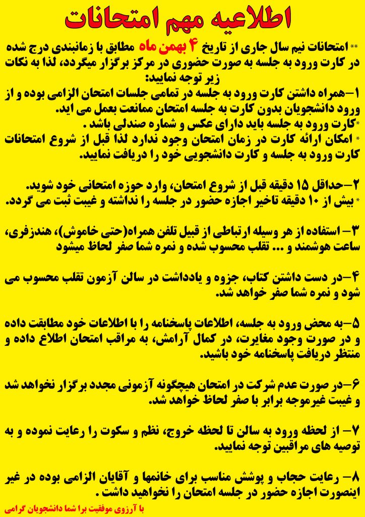 اطلاعیه های انتخاب واحد ترم مهر 1404